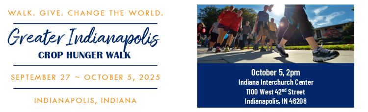 The 2025 CROP Hunger Walk will take place again at the Indiana Interchurch Center, 1100 West 42nd Street in Indianapolis. To donate or for more information, please click the link above.